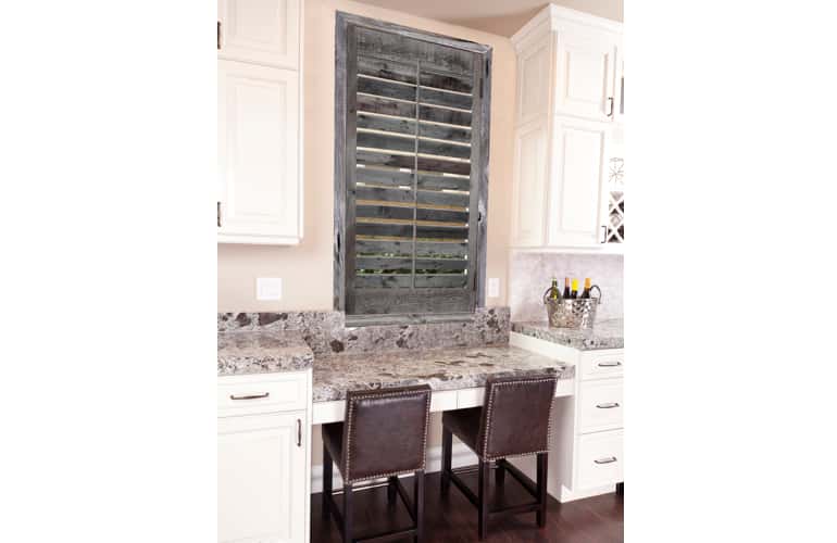 Reclaimed wood colors can vary greatly. That’s because of how the elements affect the wood. Colors can include shades of gray, beige, brown, and black. You can notice color variations between one shutter panel and another – it can even vary on a single louver. And these interior wood shutters have knots, marks, and holes that are natural in reclaimed wood.